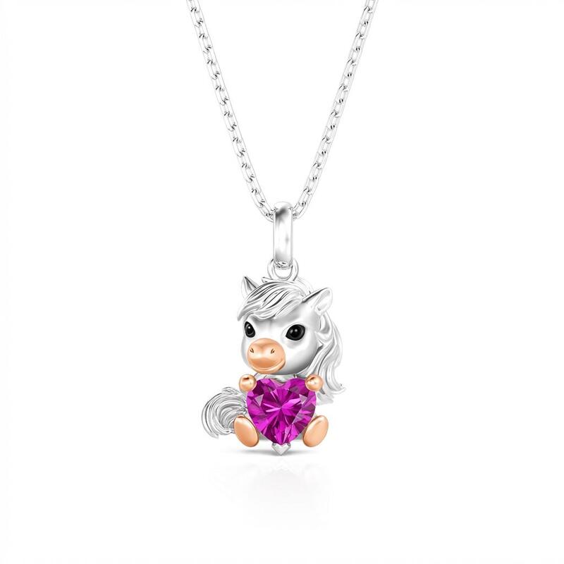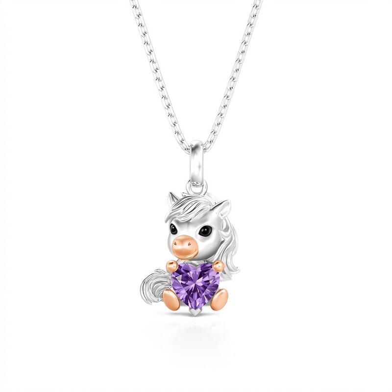 A sweet silver shetland pony with a blushed nose cuddles a heart-shaped birthstone chosen just for you, its matte finish and gentle curves feeling like a friend resting against your collarbone. This Jeulia Hug Me Custom Birthstone Shetland Pony Necklace is a little keepsake as unique and comforting as your own story.